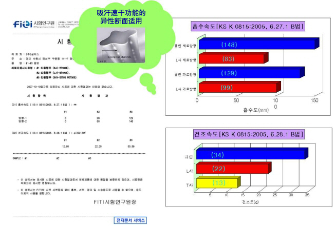 因其十字异性断面可以将皮肤的汗,水分等迅速吸收并发散至面料外部,是一种能让爱活动的穿着者任何时候都能感到爽快的高性能材料